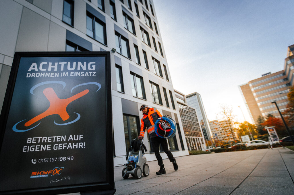 Durch den Einsatz von Drohnen vermeiden wir Risiken und Gefahren, die mit Arbeiten in großer Höhe verbunden sind. Kein Klettern, keine Gerüste, kein Stress — dafür maximale Sicherheit. Zudem reduzieren wir den Material- und Energieaufwand und leisten damit einen aktiven Beitrag zur nachhaltigen Gebäudepflege. Wie verstehen unter moderner Gebäudepflege nicht nur die Reinigung, sondern eine langfristige, umweltbewusste Instandhaltung.